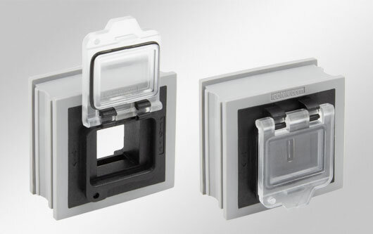 If a pre-assembled Keystone jack is not used directly, the hinged cover of the AT-KS-AK / QT-AT-KS-AK with integrated seal offers reliable protection against splash water and dust (IP54).