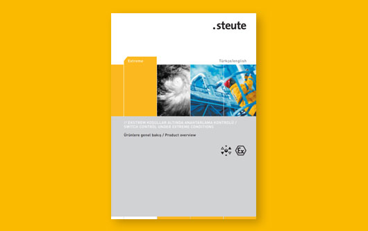 ürünler | steute ExtremeDu?nya ?ap?nda ekstrem ?evre ko?ullar? i?in anahtarlama ekipmanlar? geli?tirilmesi ve u?retilmesi alan?nda yapm?? oldu?umuz ?al??malar ve neticesinde edindi?imiz ismimizle art?k bu u?ru?nler ?Extreme? adl? yeni bir i?kolu ?at?s? alt?nda birle?tiler. Bu katalog yeni u?ru?n portf?yu?ndeki u?ru?nleri ve ekstrem ko?ullarda kar??lad?klar? standartlar? i?ermektedir.